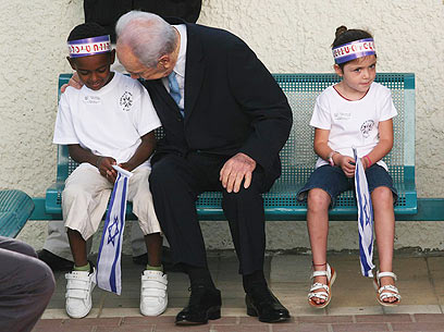 "תהיו תלמידים טובים, תאהבו את ישראל ותיזהרו בדרכים. אם אתם רוצים שיהיה טוב למדינה, תהיו אתם טובים למדינה, תלמדו, תהיו טובים, תהיו חזקים. כל המדינה כל-כך שמחה לראות את התלמידים וההורים באים היום לבית הספר", אמר פרס לילדים המתרגשים ולחץ את ידיהם בחום.