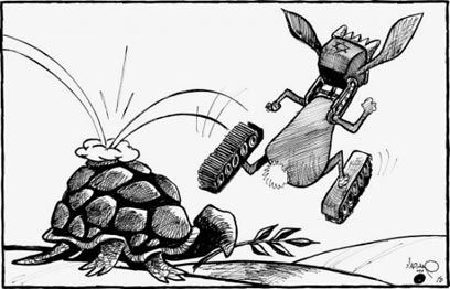 הארנב הצבאי הישראלי דורך על צב השלום. מתוך "אל-חיאת"