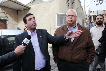הדרי (משמאל) בבית יהונתן. אין ניגוד אינטרסים? (צילום: נועם מושקוביץ)
