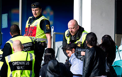 שוטרים שבדים מרחיקים מפגינים. גם זה היה הערב בגטנבורג (AP)
