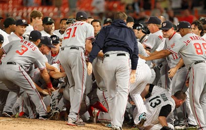 שחקנה של וושינגטון נאשיונלס נייג'ר מורגן איבד את עשתונותיו, ותקף את הפיצ'ר של פלורידה מארלינס, כריס וולסטאד. הדבר נתן את האות לקרב רב בלב המגרש, בסיומו הורחקו שישה