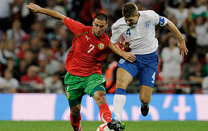 סטיבן ג'רארד והבולגרי איבלין פופוב (AP)