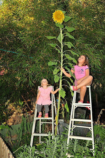 חמניית ענק בחצר של סבא: אפילו סולם לא מגיע