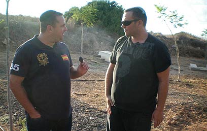 רן בן שמעון עם אמיר אשר, בנו של משה (צילום: עדי סרדס)