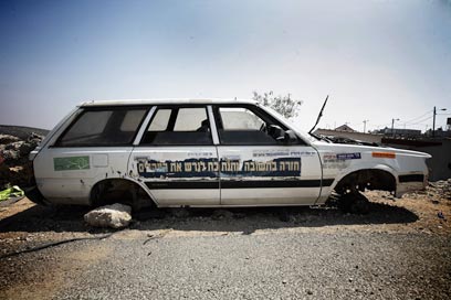 זה לא שפחדנו להסתובב בשטחי יהודה ושומרון או משהו. ובכל זאת, דובר מועצת יש"ע ישי הולנדר בא לאסוף אותנו ברכב הממוגן שלו. די סטנדרטי לאחד מאיתנו, שהסתובב פה במשך ארבע וחצי שנים עם מחסנית בהכנס, מיגון קרמי, ולפעמים גם איזו קסדה או כדור בקנה.