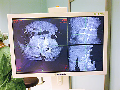 הדמיית מכשיר ה-O-arm בזמן אמת בניתוח.