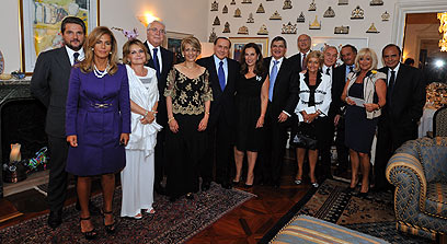ברלוסקוני, שהגיע לארוחת החג המסורתית בביתם של השגריר גדעון מאיר ורעייתו מאירה, סיפר באירוע על מאמצי הסברה בינלאומיים שהוביל למען ישראל לאחר המשט. עוד הוזמנו ובאו בכירים מכלי תקשורת שונים במדינה וכן ראשי המשק, בהם גם צ'זרה ג'רונסי, נשיא חברת הביטוח "ג'נרלי", ונשיאת התאחדות התעשיינים האיטלקית.