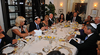 ברלוסקוני חובש כיפה בארוחה בבית השגריר ברומא (צילום: סטפנו מלוני)