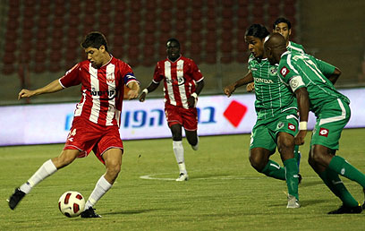 מליקסון עם הכדור, קולמה ומסיללה מנסים להפריע (רועי עידן)