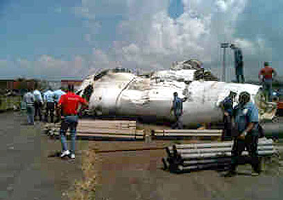 כוחות הביטחון המקומיים ליד המטוס שהתרסק (צילום: רויטרס)