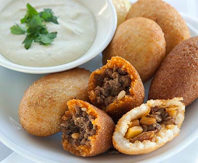 - הקובה: משטחים מעט מהבצק על כף היד. מניחים במרכז מתערובת הבשר וסוגרים. מגלגלים לקציצה אליפטית.