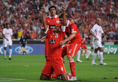 לואיזאו ושחקני בנפיקה חוגגים, דה סילבה מאוכזב (AFP)