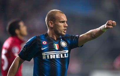 41: גול! אינטר משווה ל-2:2. סניידר, כובש שער היתרון לאורחים, שימש כקיר לסמואל אטו, שבעט כדור שטוח ומדויק מ-16 מטרים ופנימה.