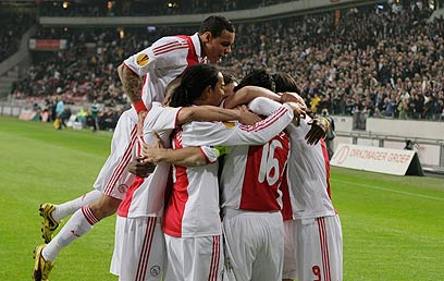 חולמים על תמונות של שמחה גם בברנבאו, שחקני אייאקס (AP)