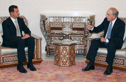 מיטשל ואסד בפגישתם ביום חמישי (צילום: AP)