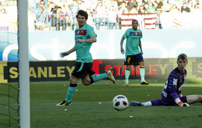 מסי כובש את הראשון של בארסה, בסיום הורד על אלונקה (רויטרס)