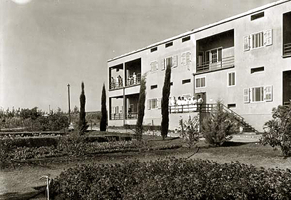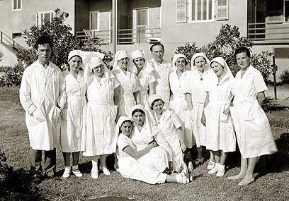 ו'. לקבוצת עין חרוד הגיעו גם הורי חברי הקבוצה. בתצלום: האחות חנה בלוך מטפלת באחד ההורים.