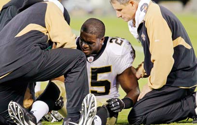 על השמחה של הקדושים מניו אורלינס העיבה פציעתו של הראנינג בק רג'י בוש, שיצא מהמגרש ברבע הרביעי וירד מיד לחדר ההלבשה כששקית קרח גדולה מעטרת את רגלו הימנית. בוש אמור לעבור בדיקות בניו אורלינס על מנת לברר את חומרת הפציעה. "אני מנסה להישאר כמה שיותר חיובי לנוכח הסיטואציה ולא לחשוב על הגרוע מכל", אמר השחקן בסיום המשחק.