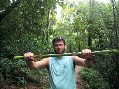 שלושה ברזילאים צעירים התקדמו לעברי. שאלתי אותם על הכיוון לכפר, ובתגובה הם צחקו על איש המערות השרוט והחבול שצץ להם פתאום מתוך הסבך. כשהסברתי להם שאני מחפש את הדרך החוצה מהג'ונגל במשך ארבעה ימים, הם כבר לא צחקו. אחד מהם שדיבר קצת אנגלית עזר לי לסחוב את התיק והסביר לי שהחוף הדרומי נמצא 20 דקות הליכה מאחור, ושנותרו לנו בערך שעתיים הליכה עד הכפר. בחצי הדרך, הוא הבטיח, העלייה תהפוך לירידה. בינתיים הגשם חזר לרדת.