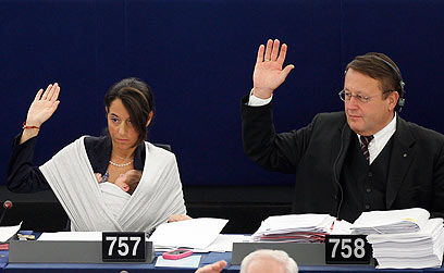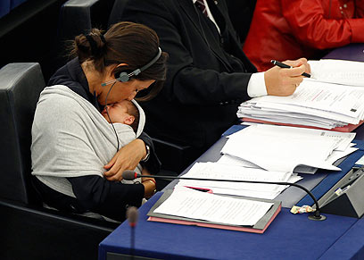 ליציה רונזולי האיטלקייה, חברת מפלגתו של ברלוסקוני, הופיעה לישיבת הפרלמנט האירופי עם בתה הקטנה צמודה אליה - כחלק ממאבק האמהות העובדות. ומה אם היא תבכה?