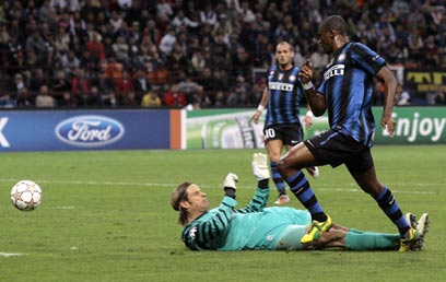 סמואל אטו מכניע את טים ויזה. הקמרוני לא מפסיק לכבוש העונה (רויטרס)