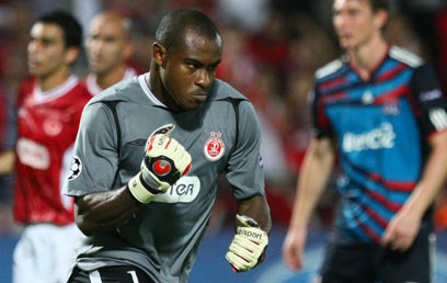 אניימה חוגג שער בכורה של הפועל ת"א בצ'מפיונס (צילום: אלי אלגרט)