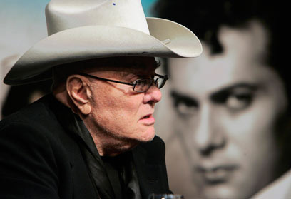 קרטיס בזקנתו, על רקע דמותו הצעירה (רויטרס)