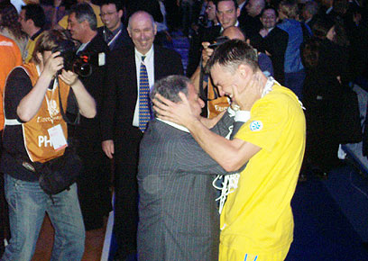 יאסיקביצ'יוס, חוגג עם שמעון מזרחי. לא הפעם (צילום: סהר רחמים)