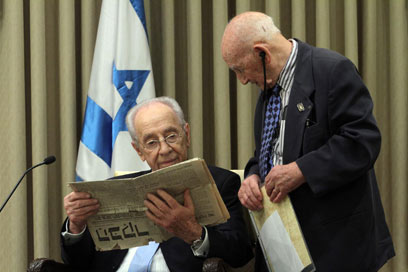 הנשיא אירח פעילים חברתיים קשישים, באירוע לציון "חודש האזרח הוותיק". אחד המוזמנים הגיש לו עיתון בן יותר מ-70 שנה - ולאחר שבחן את הכותרת, קבע פרס: "נו, כלום לא השתנה"