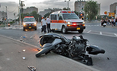 הקטנוע שעליו רכב מימון, הבוקר בזירת התאונה (צילום: שי וקנין)