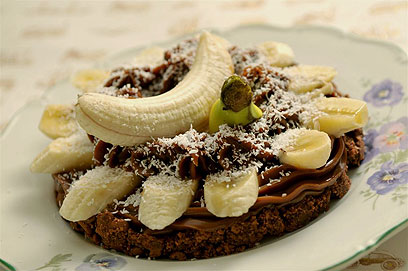 - חותכים את הבננות לפרוסות עגולות, ומניחים על ריבת החלב/חלב ממותק.