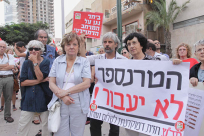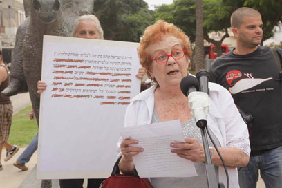 יורם קניוק בהפגנה. "צריך להתמרד נגד החוקים" (צילום: עידו ארז)