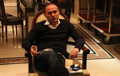 הסקאוט מוטי איוניר במלון הנבחרת באתונה. הוא כן דיבר? (אורן אהרוני)