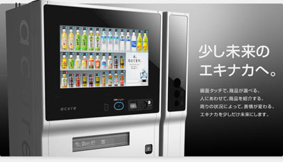 המכונה הראשונה מהסוג הזה הותקנה בתחנת הרכבת שינגאווה בטוקיו (הנה הפרסום מתוך הבלוג האישי של המכונה הזאת) (כן, כן). אם תעמדו מול המכונה, שגודלה כגודל שני מקררים גדולים זה לצד זה, היא תביט בכם בחזרה - ואז תציג על המסך הענק שבחזיתה תמונות של המשקאות שהיא ממליצה לכם לשתות. כשאיש לא עומד לידה, המכונה מציגה זוג עיניים גדולות שבוהות בעוברים והשבים - כי באמת, מכונה יפנית שמנחשת מה אתה אוהב לשתות זה לא קריפי מספיק.