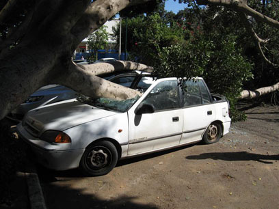 עץ קרס וריסק מכונית בכפר-סבא: "הגזע ננעץ"