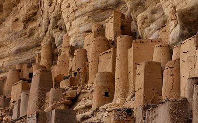 הדוגונים, להבדיל מקודמיהם, בנו את כפריהם למרגלות מצוקי אבן החול. סלעי הענק, המפרידים בין הרמה הגבוהה ונהר הניז'ר (Niger) הסמוך, הגנו עליהם במשך מאות שנים מחורשי רעתם.