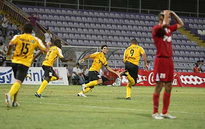 דקה 2': ההזדמנות הראשונה היתה של האורחת אחרי שחן עזרא הגביה לרחבה, אך הנגיחה של לאוניד קרופניק לא מצאה את המסגרת.