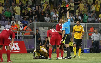85': תמיר פור ביצע עבירה 20 מטרים מהשער, ראה צהוב שני והורחק.