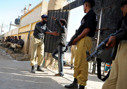 חיפושים על גופו של מצביע בכניסה לקלפי (צילום: AFP)