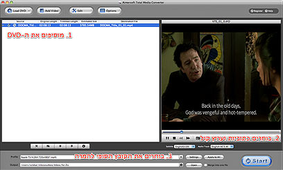 3. לאחר שאתם מרוצים מהבחירה שעשיתם, וכל החומרים מאותו די.וי.די נבחרו ונוספו לתור, אתם יכולים ללחוץ על Start.