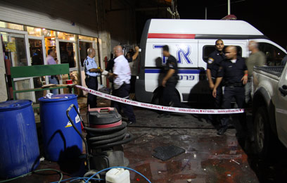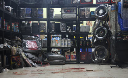 כתמי דם בחנות חלקי החילוף שבה עבד אייל (צילום: אבישג שאר-ישוב)