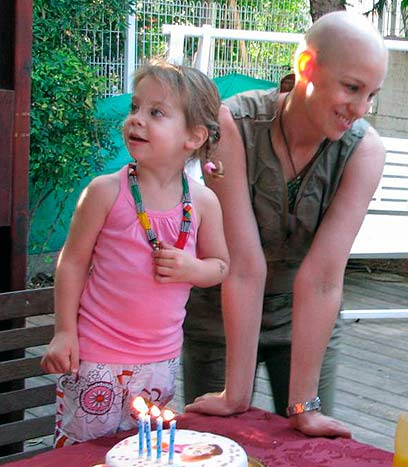 היא זוכרת את תקופת הטיפולים שבה שהתה בבידוד חלק מהזמן ושכבה במיטה. הילדים לא יכלו להתקרב ורק עמדו על מפתן הדלת. אני זוכרת שאמא שלי אמרה להם לשמור על שקט כי אמא נחה ואני לא רציתי להיות 'אמא נחה'".
