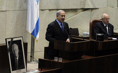 נתניהו בכנסת, היום. "השנים קירבו בין העם" (צילום: גיל יוחנן)