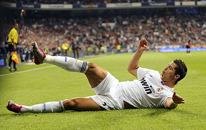רונאלדו חוגג רביעייה ראשונה בקריירה. מלך שערי הליגה (צילום: AFP)