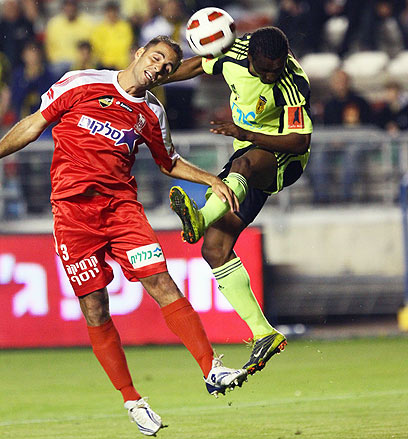 מאיר כהן, המצטיין במשחק, עוצר את אבירם ברוכיאן (אלי אלגרט)
