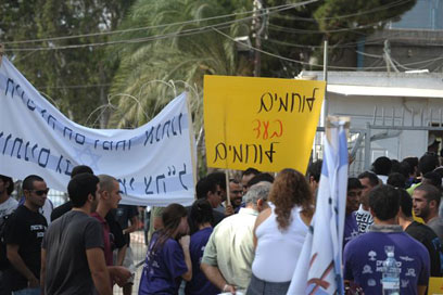 "קורבנות גולדסטון". תומכי החיילים מחוץ לאולם (צילום: אבי רוקח)