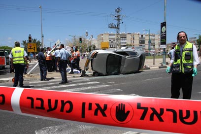 זירת התאונה (צילום: אבישג שאר-ישוב)