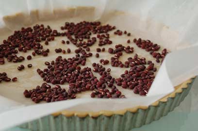 כדי לשלוט בבצק יש למלא את התבנית במלואה בשעועית! (צילום: יעל גרטי)