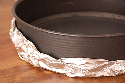 כשיש חשד לכך שהתבנית איננה אטומה לחלוטין, או כשהעיסה מאוד נוזלית וחוששים לנקיונו של התנור, מומלץ "לאבטח" את בסיס התבנית בעזרת שתי פיסות מלבניות של יריעת אלומיניום, שיש ללפף סביב הבסיס (ראו צילום). לחליפין ניתן להניח יריעת אלומיניום על רצפת התנור ועליה להניח חפץ כבד וחסין חום, שימנע את תזוזתה.