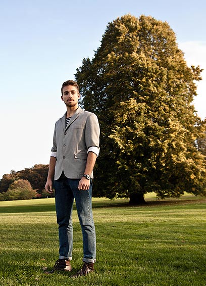דייויד: טירשט - סמסו-סמסו (Samsøe+Samsøe), מכנסיים וקרדיגן – ד'יז גלורי דייז (These Glory Days), נעליים – ספרי (Sperry)